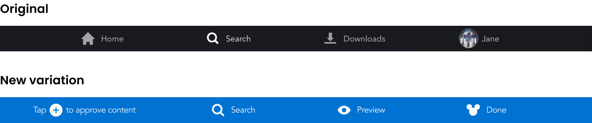 How could I mimic the existing navigation while signifying to the user that they are in Approve Content mode?