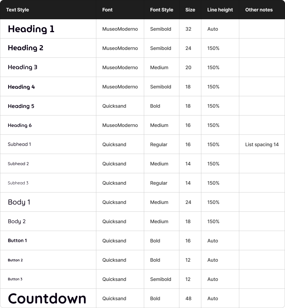 Quicksand was chosen as the body font based on multiple font preference tests from 2 retired adults.